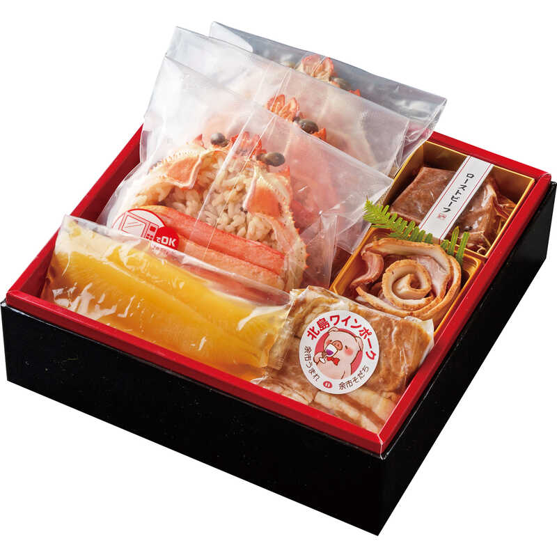 全国から沢山の食材が集まる味覚の宝庫「札幌市中央卸売市場」から、魚しゃぶが名物の〈濱の季〉が厳選した食材を中心とした【北海道おせち】。きんき姿煮も付いています。