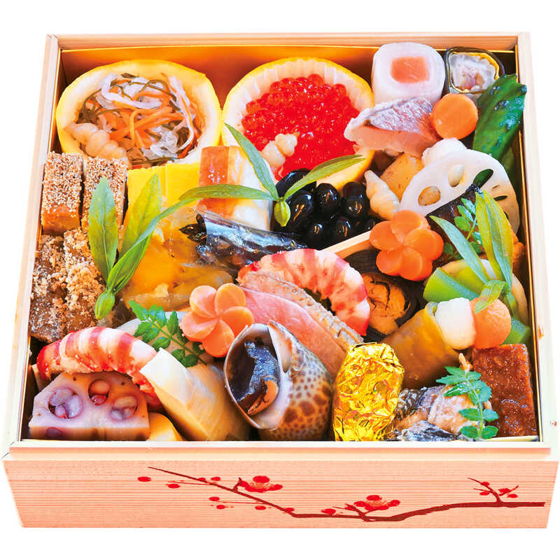 ※諸事情により献立内容、品目数、重箱サイズ、材質が多少変更になる場合もございます。あらかじめご了承ください。