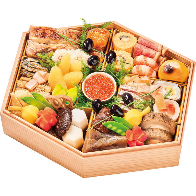 ※諸事情により献立内容、品目数、重箱サイズ、材質が多少変更になる場合もございます。あらかじめご了承ください。