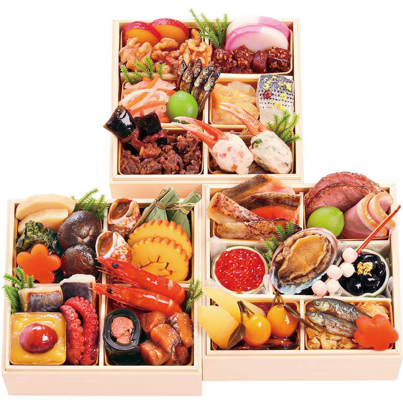 ※諸事情により献立内容、品目数、重箱サイズ、材質が多少変更になる場合もございます。あらかじめご了承ください。