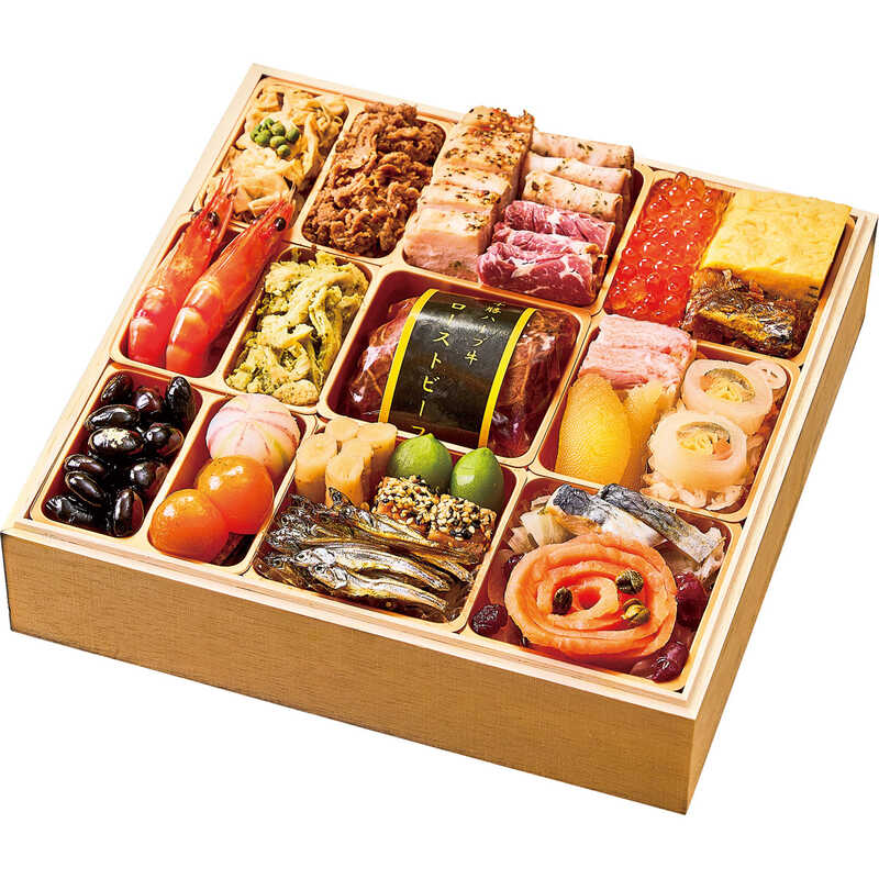 ※諸事情により献立内容、品目数、重箱サイズ、材質が多少変更になる場合もございます。あらかじめご了承ください。