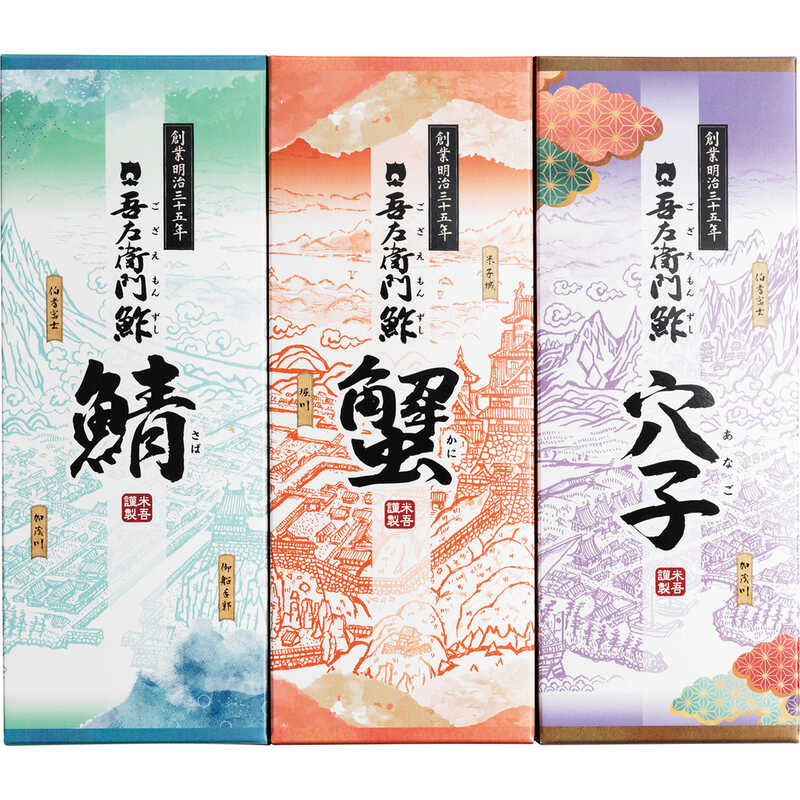 吾左衛門鮓(さば、かに、穴子×各1本)