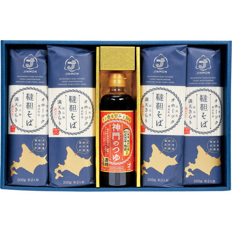 「神門のつゆ」と「満天きらり使用 韃靼蕎麦」のセット<つゆ>北海道雄武町産利尻昆布と鮭節を使用し、ダシの効いたまろやかな甘みと旨味が凝縮した3倍濃縮のつゆです。<そば>北海道雄武町産だったんそば粉(満天きらり)と北海道産小麦粉(ゆめちから)により作り上げた製品です。新品種満天きらりは、韃靼そば特有の苦味がほとんど無く、ルチンが多く含まれております。ルチンとはポリフェノールの一種である機能性成分で健康を気づかう方におすすめです。