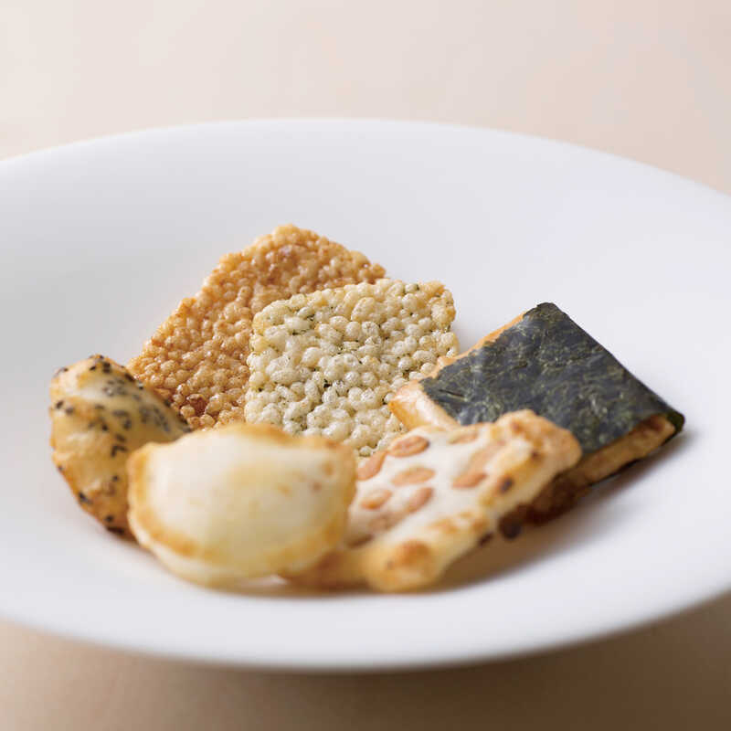 ひとくち慶長/醤油・青海苔×各12、ひとくち豆柿・ひとくち海苔巻×各10、古乃端/海老・胡麻×各12