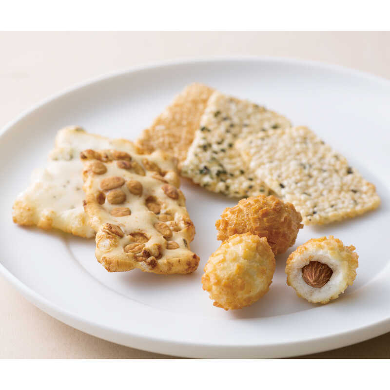 - 慶長/醤油×28・しぶき海苔・胡麻・うすくち醤油×各14、慶凰/醤油×10・塩×5、かきもち昆布・豆柿×各8