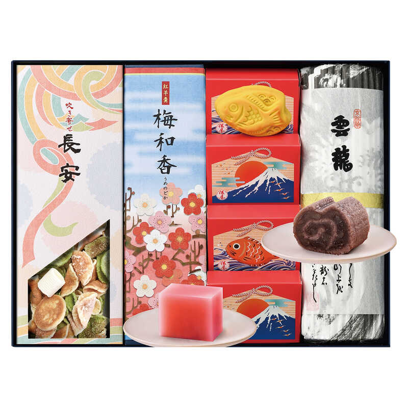 雲龍(本棹)(425g)・梅和香(180g×2)・ふきよせ「長安」(75g)×各1、京 禧鯛焼(30g)×4
