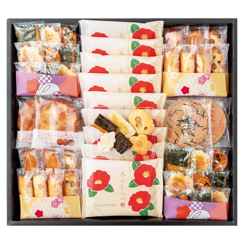 - 冬のしらべ×9、あられ おせんべい詰合せ(10枚入)・おかき詰合せ(7本入)×各2、花丸×3、えびす焼×5