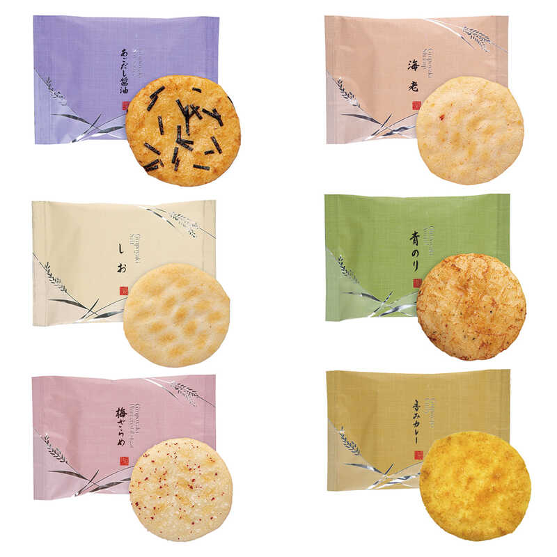 - 吟芳焼あごだし醤油・吟芳焼海老・吟芳焼しお・吟芳焼青のり・吟芳焼梅ざらめ・吟芳焼香みカレー×各9
