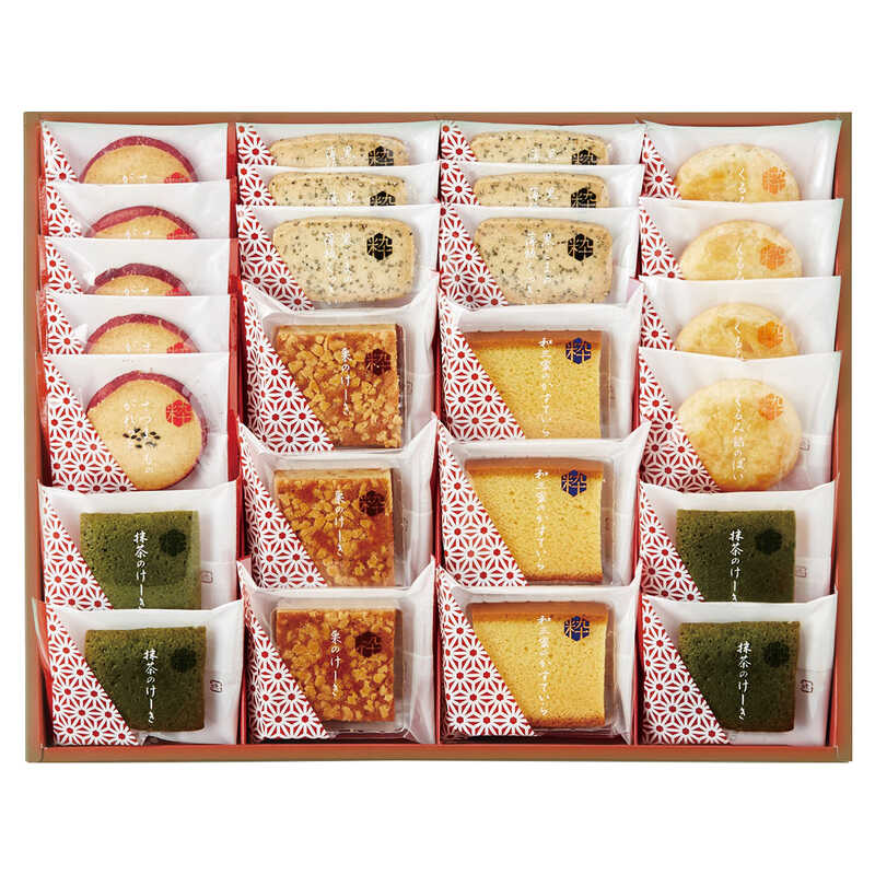 和三蜜のかすていら・栗のけーき×各3、抹茶のけーき・くるみ餡のぱい×各4、さつまいものがれっと×5、黒ごまの薄板くっきい×6