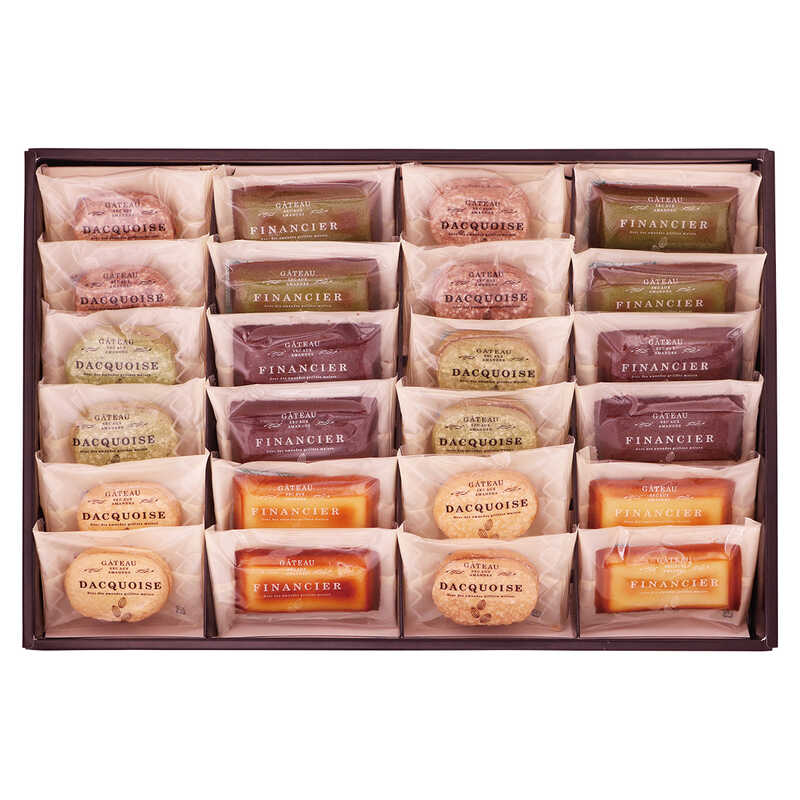 - ダックワーズ/プラリネ・ショコラ・抹茶×各4、フィナンシェ/プレーン・ショコラ・抹茶×各4