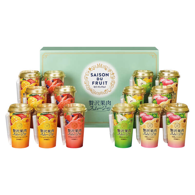 - マンゴー&グァバ&パイナップル・白桃&マスカット×各4、ざくろ&ミックスベリー・洋なし&レモン×各3