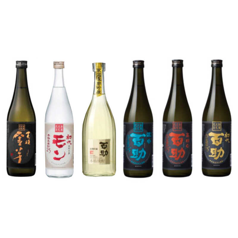 - 麦焼酎/初代百助・百助高精白・百助濃香・長期貯蔵百助(各25度)×各1(各720mL)、米焼酎 モン(25度)・芋焼酎 天領金芋(23度)×各1(各720mL)