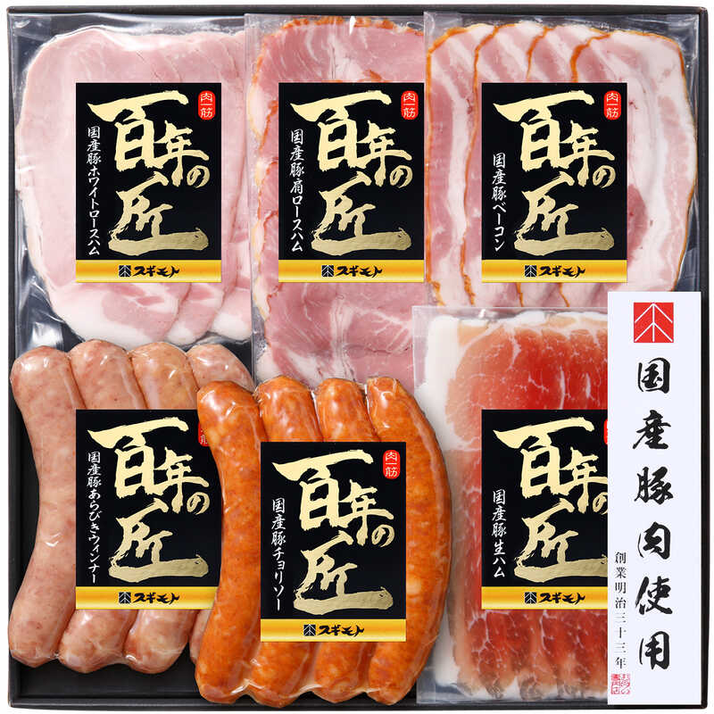 - ホワイトロースハム・肩ロースハム・ベーコン・生ハム(各50g)・あらびきウインナー・チョリソー(各100g)×各1