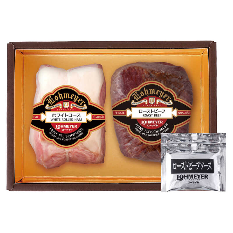 - ホワイトロースハム(280g)・豪州産ローストビーフブロック(150g)×各1、ローストビーフソース(20g)×2