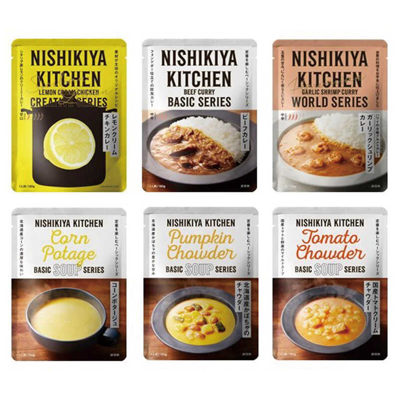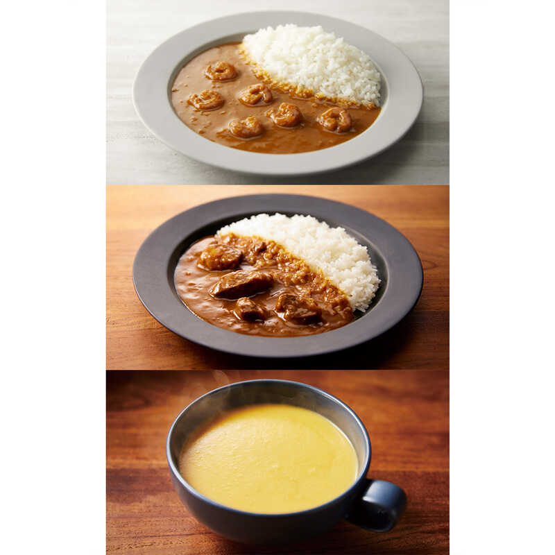 レモンクリームチキンカレー・ビーフカレー・ガーリックシュリンプカレー・北海道産かぼちゃのチャウダー・国産トマトクリームチャウダー(各180g)・コーンポタージュ(160g)×各1