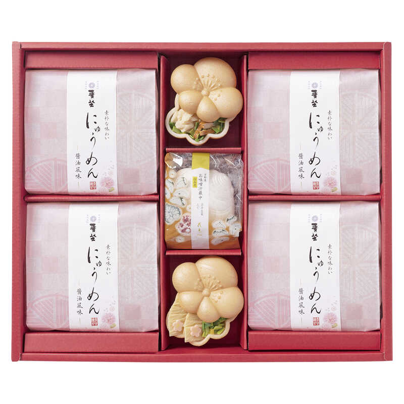 - お吸物/九条ねぎ(鯛)・京壬生菜(ふぐ)・九条ねぎ(ゆば)×各1、即席手延にゅうめん(麺50g・つゆ30g)×4
