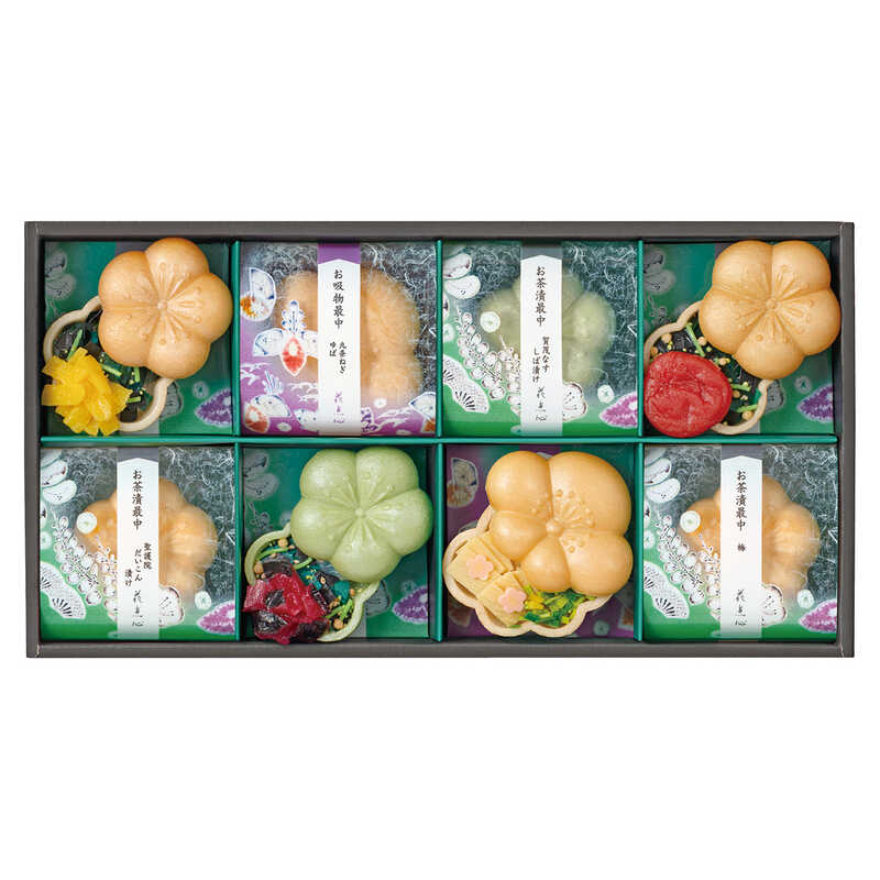 - お茶漬/賀茂なすしば漬け・聖護院だいこん漬け・梅×各2、お吸物/九条ねぎ(ゆば)×2