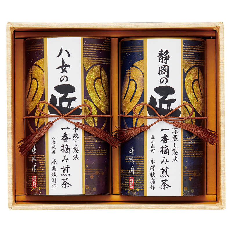 八女の匠 原島政司作 一番摘み煎茶・静岡の匠 永澤秋高作 一番摘み煎茶(各100g)×各1