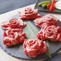 神戸牛、松阪牛、近江牛、米沢牛、宮崎牛の5種類の銘柄和牛の異なる部位に、イタリア産の牛タンを花盛に盛り付けた焼肉をお楽しみください。