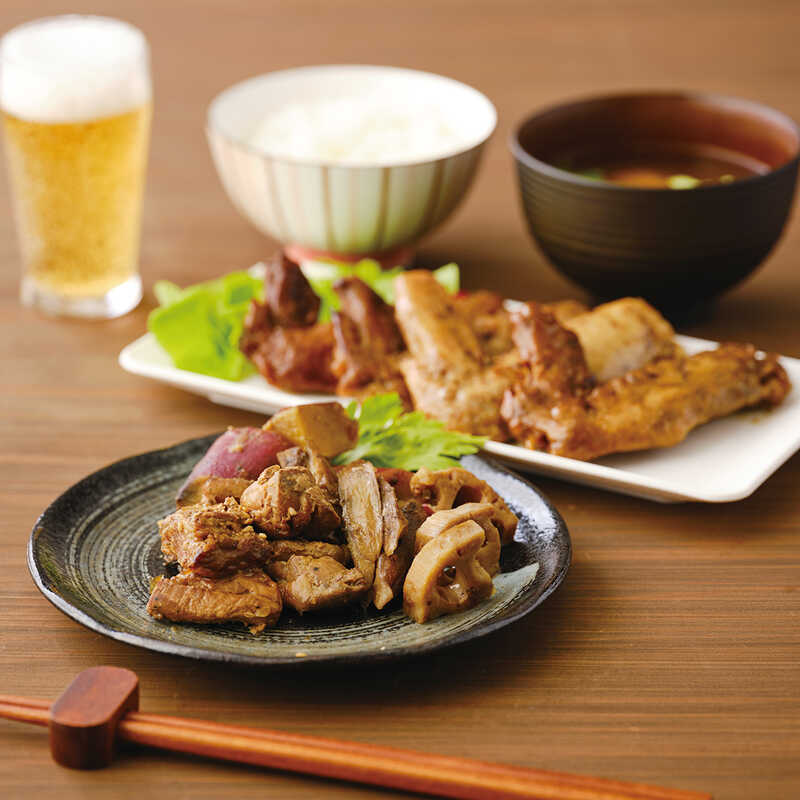 秋田の誇る美味鶏”比内地鶏”と東京浅草に店舗を構える味噌専門店とのコラボ商品。味噌ソムリエ渾身の4種のフレーバー味噌に、比内地鶏と相性抜群のごぼう、蓮根、さつまいもを合わせた地鶏と根菜の味噌漬けと、うまみを蓄えた地鶏の手羽先を合わせた、計8種の味わいをお楽しみいただけます。