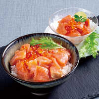 脂のりのよいサーモンと、ぷちぷち食感のいくらを特製のタレで丁寧に漬け込みました。