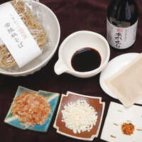 - ノンフライ低温乾燥麺(50g)・だしパック(15g)・枯花かつお(3g)・天かす(5g)・七味(0.2g)×各5、本かえし(300mL)×1