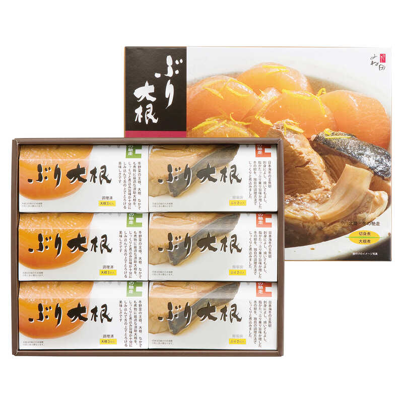 ※大根煮とぶり煮は別箱に入っていますので、器の中であわせてお召し上がりください。本商品は、高圧殺菌製法で作られていますので常温(直射日光を避ける)で、未開封の場合は6カ月の長期保存が可能です。