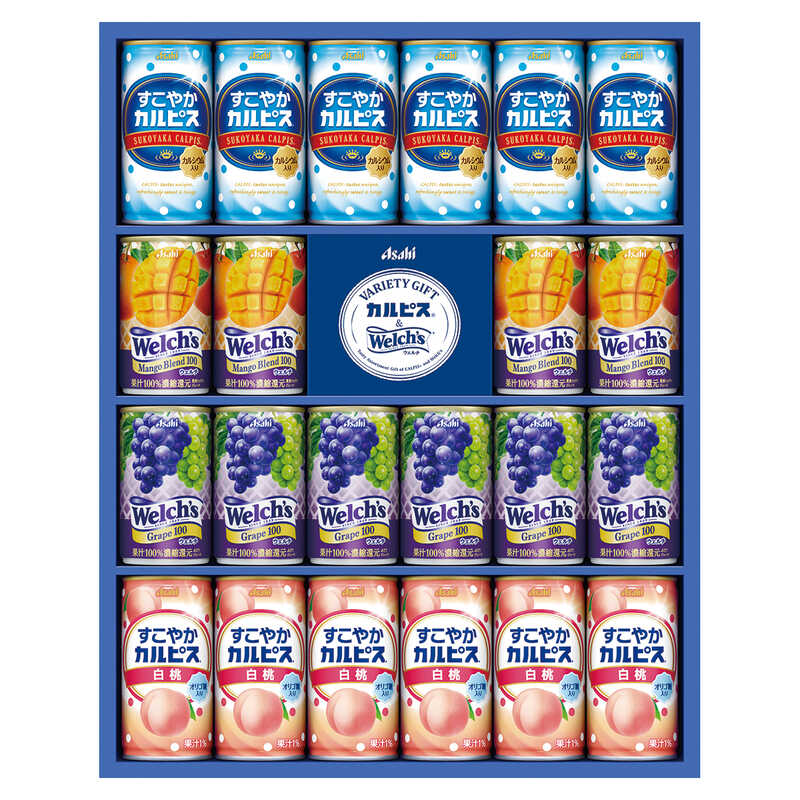 - すこやかカルピス・〈白桃〉×各6(各190g)、ウェルチ100/グレープ×6・マンゴーブレンド×4(各160g)