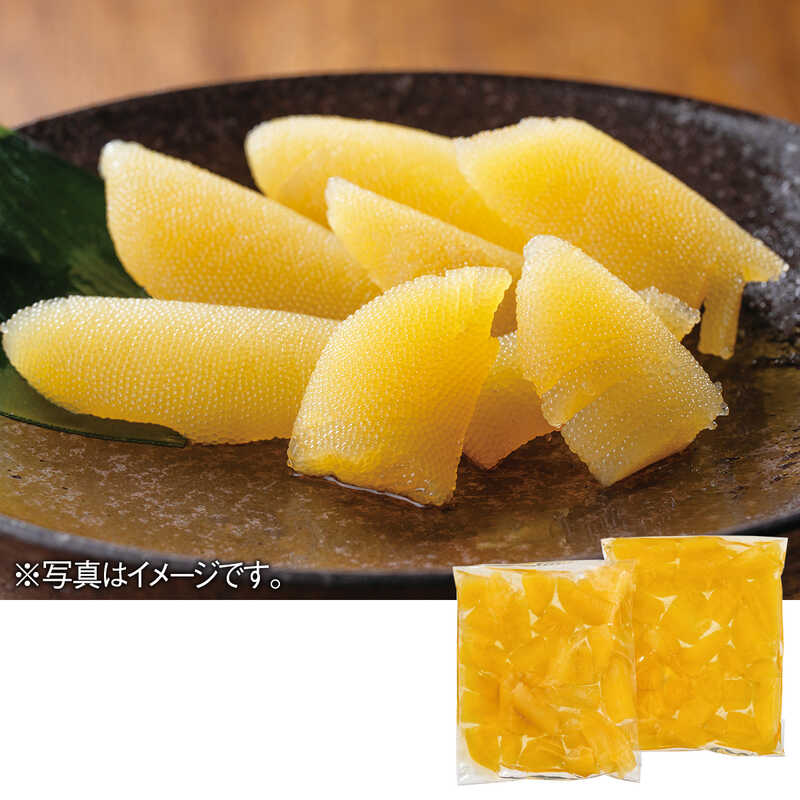 カナダ産またはアメリカ産の味付け数の子。2~5cmくらいの折れや型崩れですが、そのままおいしく召しあがれます。