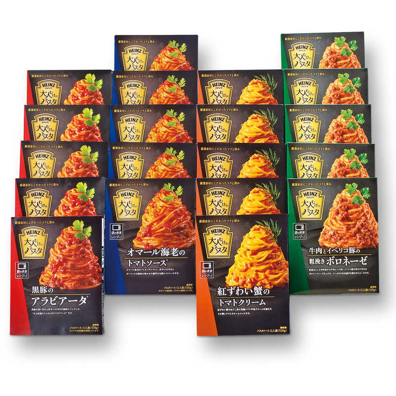 紅ずわい蟹のトマトクリーム・牛肉とイベリコ豚の粗挽きボロネーゼ・黒豚のアラビアータ・オマール海老のトマトソース(各110g)×各5