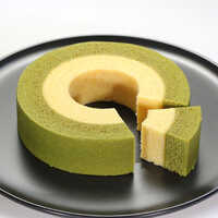 外側に島根県にある原寿園のお茶を使用し、内側にプレーンの二重の見た目にも綺麗な二つの味が楽しめるバウムクーヘンです。