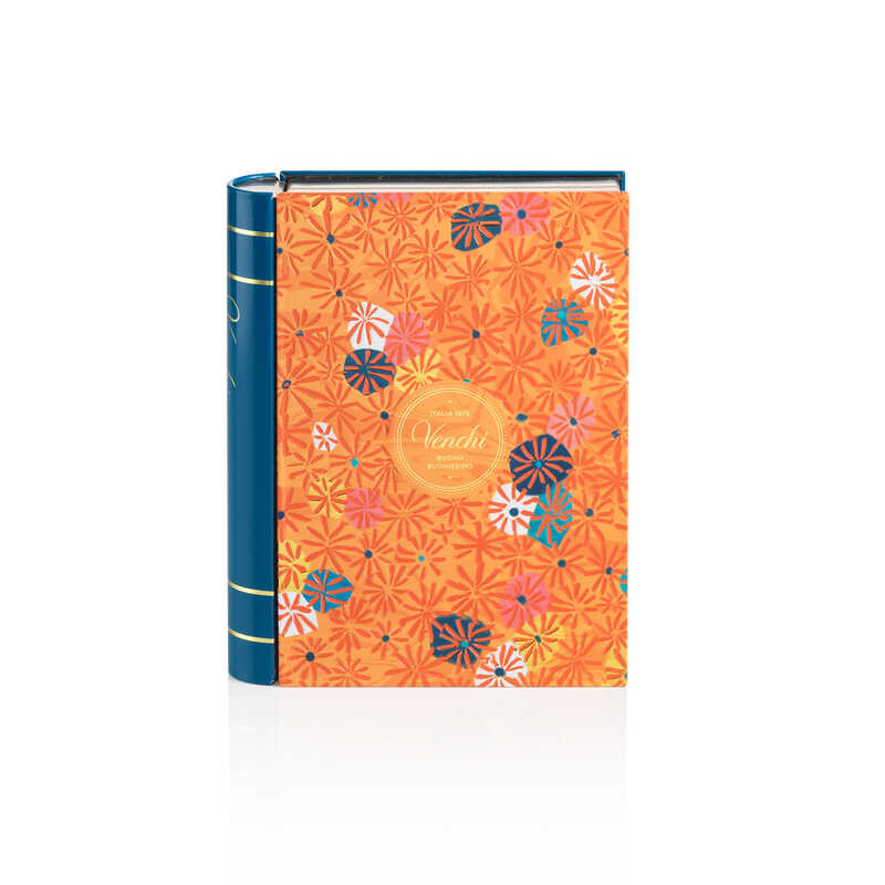 Venchiのギフトの中でも人気が高いブック缶シリーズのマキシサイズ。表紙のムリーニデザインと深いブルーの背表紙のコントラストが美しいギフト缶。ふたを開けばきらめくイタリアンチョコレートの鮮やかな色彩が目に飛び込んできます。イタリア伝統のレシピから、革新的な新しいフレーバーまでVenchiこだわりのコレクションを堪能していただける19種類27個をバランスよくアソートしました。