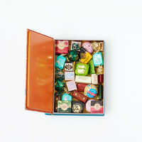 - インゴットホワイトソルテッドナッツ×1個、インゴットミルクチョコレートヘーゼルナッツ×1個、インゴットダークチョコレートヘーゼルナッツ×1個、クレミノエクストラダーク×2個、クレミノ1878×2個、クレミノゴールドキャラメル×2個、ティラミス×3個、ジャンドゥイオットジャンドゥーヤVF×2個、バッチョディダーマミルク×2個、グランブレンドエクストラダークアロマティック80%×1個、カンノーロ×1個、グランブレンドニブズ77%×1個、ジャンドゥイオットピスタチオ×1個、グランブレンドダークチョコレートウィズミントクランチー×1個、グランブレンドラズベリー&カカオニブ×1個、ジャンドゥイオット×1個、チョコビアピスタチオ×1個、パールミルクジャンドゥーヤ&ヘーゼルナッツ×2個、チョコビア75%×1個