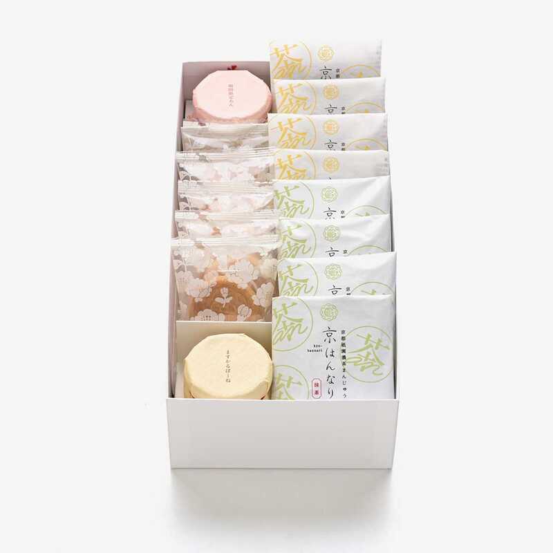 【あんぽーね(栗きなこ)】『北海道産大豆の特製深煎りきな粉』と『国産栗』を練り込んだ栗きなこ餡です。深煎りにした香ばしいきな粉の風味と秋の味覚『国産栗』を惜しげもなく使用したあんこと自家製マスカルポーネクリームの爽やかな甘さ味わいの融合をお楽しみ下さい。【京はんなり(抹茶)(ほうじ茶)】京都宇治の抹茶やほうじ茶を、丁寧に炊き上げた白あんにたっぷり練り込み香り豊かな生地で包み込んだしっとりとしたお饅頭です。