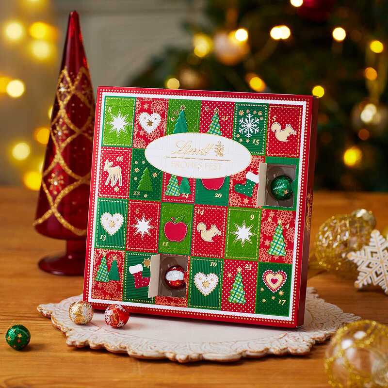 リンドールをイメージした丸いチョコレートであるミニボール ミルク、ホワイトに加えて、人気の焼きりんご味など、お子様でも楽しめるフレーバーがアソートされています。デスクに置けるサイズの、リンツで長年親しまれているアドベントカレンダー
