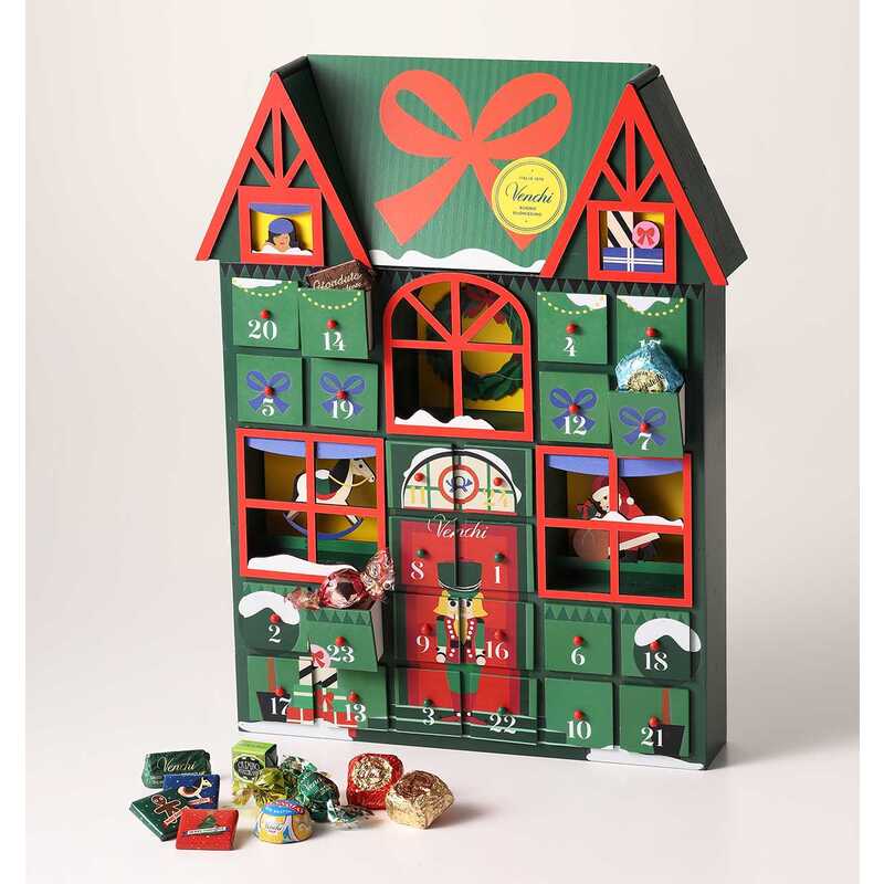 1日ずつ指折り数えてクリスマスを待つのが楽しいアドベントカレンダー。高さ45cmの家の形をした豪華な木製のアドベントカレンダーは、お部屋に飾れば一気にクリスマスムードに。ウィンターコレクション2025は、世界的なアーティストAlice Bureauがヴェンキの為に描き下ろしたイラストで彩られています。窓から見えるクリスマスモチーフに心躍る、遊びごころ満載のデザインです。25種類29個の多彩なレシピのイタリアンチョコレートをご自身でセットしてお楽しみいただけます。