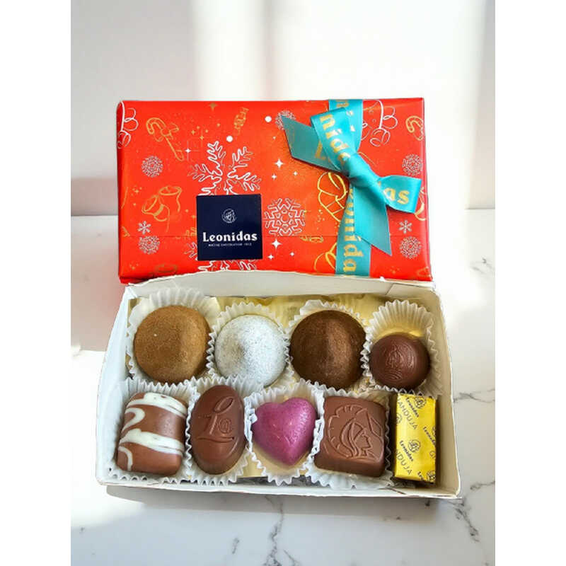 ベルギー現地で親しまれている仕切りのないバロタンと呼ばれる定番のボックスに2段にお詰めしています。クリスマス包装仕様。