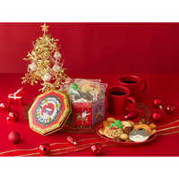 メリーゴーランドに乗って楽しんで遊んでいるねこ達の可愛いデザイン缶に17種類のクッキーを詰め合わせたバラエティー豊かなクリスマス限定商品です。