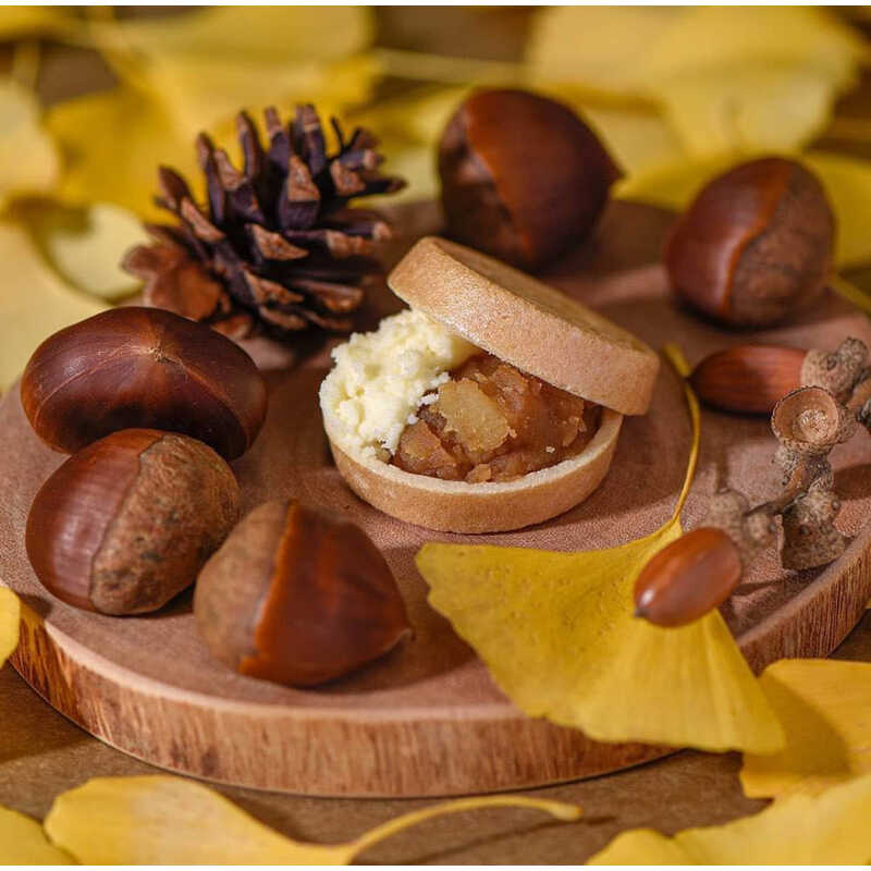 【あんぽーね(栗きなこ)】『北海道産大豆の特製深煎りきな粉』と『国産栗』を練り込んだ栗きなこ餡です。深煎りにした香ばしいきな粉の風味と秋の味覚『国産栗』を惜しげもなく使用したあんこと自家製マスカルポーネクリームの爽やかな甘さ味わいの融合をお楽しみ下さい。