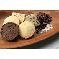 しっとりとしたチョコレート生地に塩とチョコレートチップを練り込んだ「塩チョコケーキ」、ホワイトチョコレートとビターチョコレートを練り込んだ「マーブルケーキ」、米粉を使用したサブレ「チョコチップ」「ニブ&チョコチップ」「塩&カカオバター」の詰め合わせです。