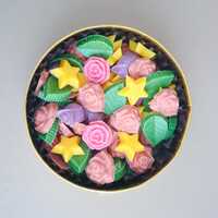 ハートや薔薇の形をした色鮮やかなチョコレートを詰め込んだプチギフトBOX。