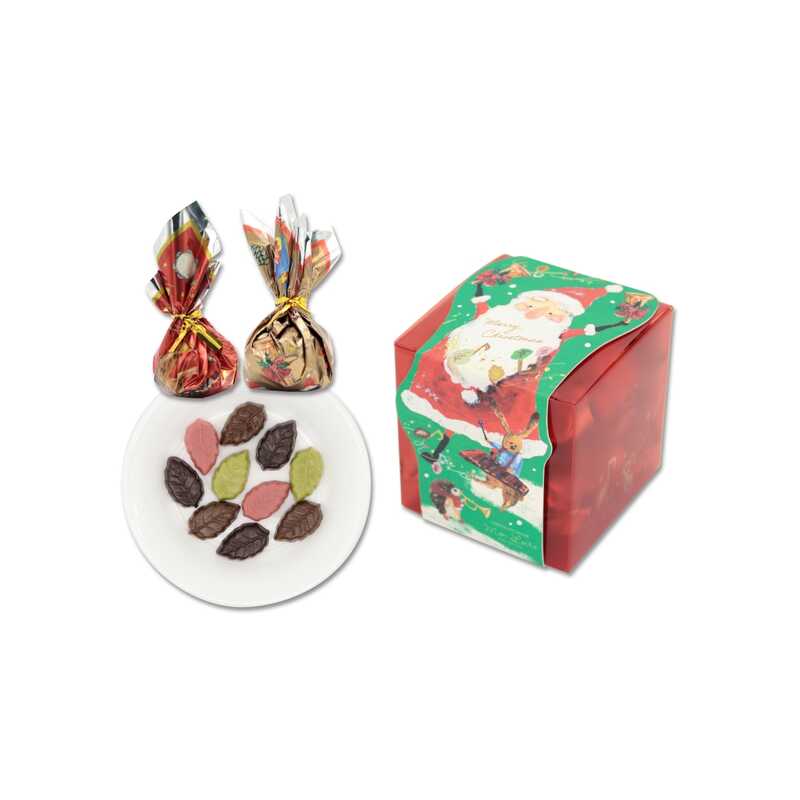 モンロワールの人気商品、リーフメモリー赤(ストロベリー・ラズベリー・ミルク)とリーフメモリー茶(アーモンド・ピスタチオ・ミルク)をセットにした、クリスマス限定パッケージです。