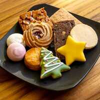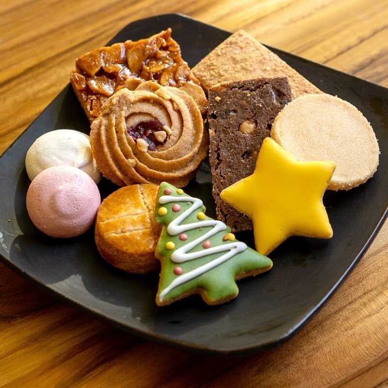 ツリークッキー×1,スタークッキー×1,ギャレットブルトンヌ×4,リンツァートルテ×2,フロランタン×4,ヘーゼルナッツチョコクッキー×4,カマンベールチーズクッキー×3,ブリュッセラー×3,フランボワーズのメレンゲ×3,レモンのメレンゲ×3