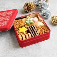 華やかな彩りのクリスマスツリーをイメージした期間限定アイシングクッキーが入ったクリスマスフールセック缶です。バターの風味とほんのり塩味がアクセントのギャレットブルトンヌ、ヘーゼルナッツと相性の良いチョコのザクっと食感が楽しめるヘーゼルナッツクッキー、メレンゲなどを詰め合わせました。