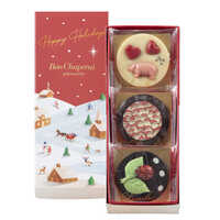 ショコラが魅せる甘い芸術。サンタクロースのデザインがかわいいチョコレート入り。人気のラッキーピッグやてんとう虫のデザイン入ったクリスマス限定の詰合せ。