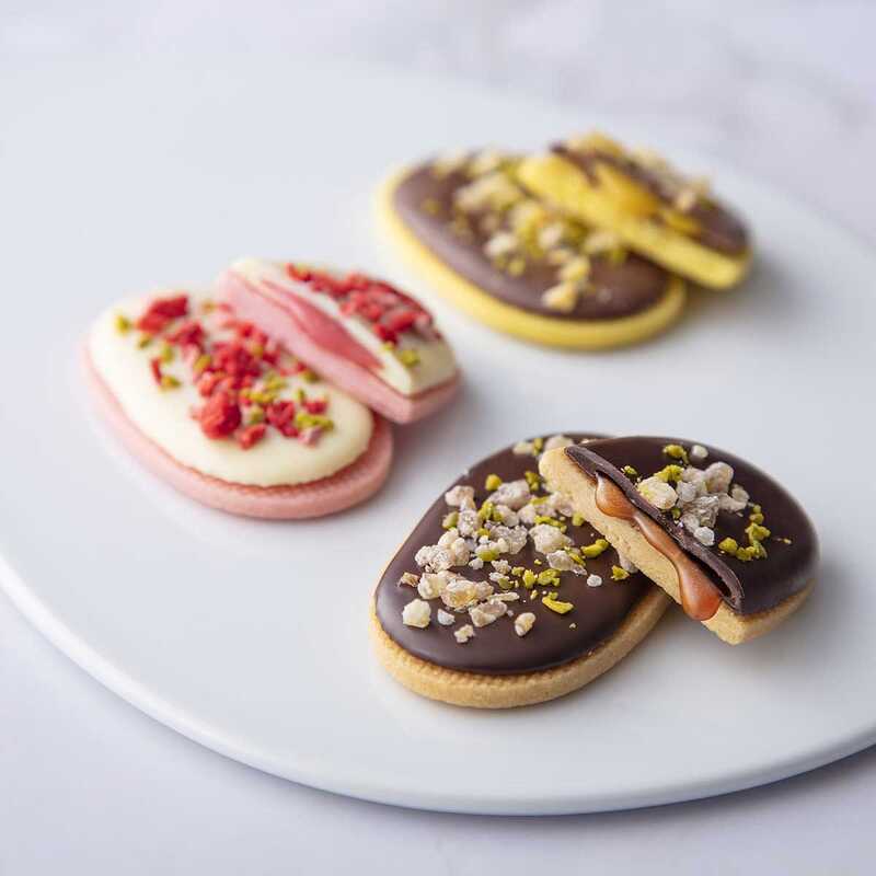 とろっとあふれるフィリング入りチョコレートと、さくさく食感のサブレ「ショコララング」。クリスマス限定パッケージの詰合せ。