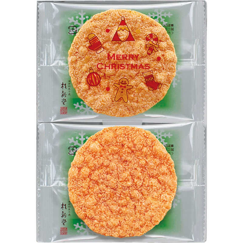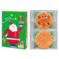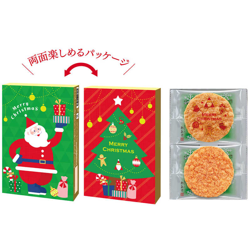 定番の赤えび炙り焼きのクリスマス限定パッケージです。表・裏を並べた際に、絵柄が繋がるリバーシブルデザインです。