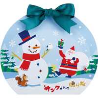 森を見守る大きな雪だるまや小さな動物たちが描かれたえびせんべいとサンタ型の赤えび炙り焼き、抹茶・南瓜・アーモンド・苺といった様々な味を楽しめる詰合せです。