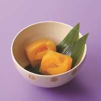 山形県産黄金桃をまるごとひとつ使用。しっかりと果汁をたたえた果実と、ピューレをふんだんに使用した瑞々しいぜりぃが調和します。