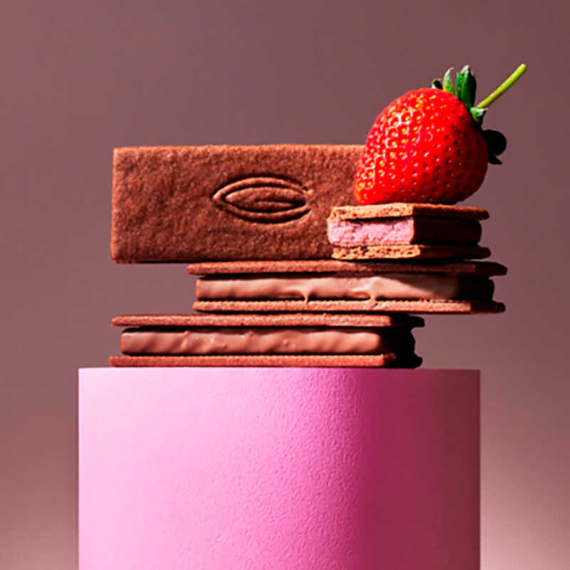 「グリオットピスターシュ」「カフェキャラメル」「ストロベリー」の詰合せ。